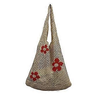Women's Tote Bag Floral Knit Mesh Cutout Shoulder Bag