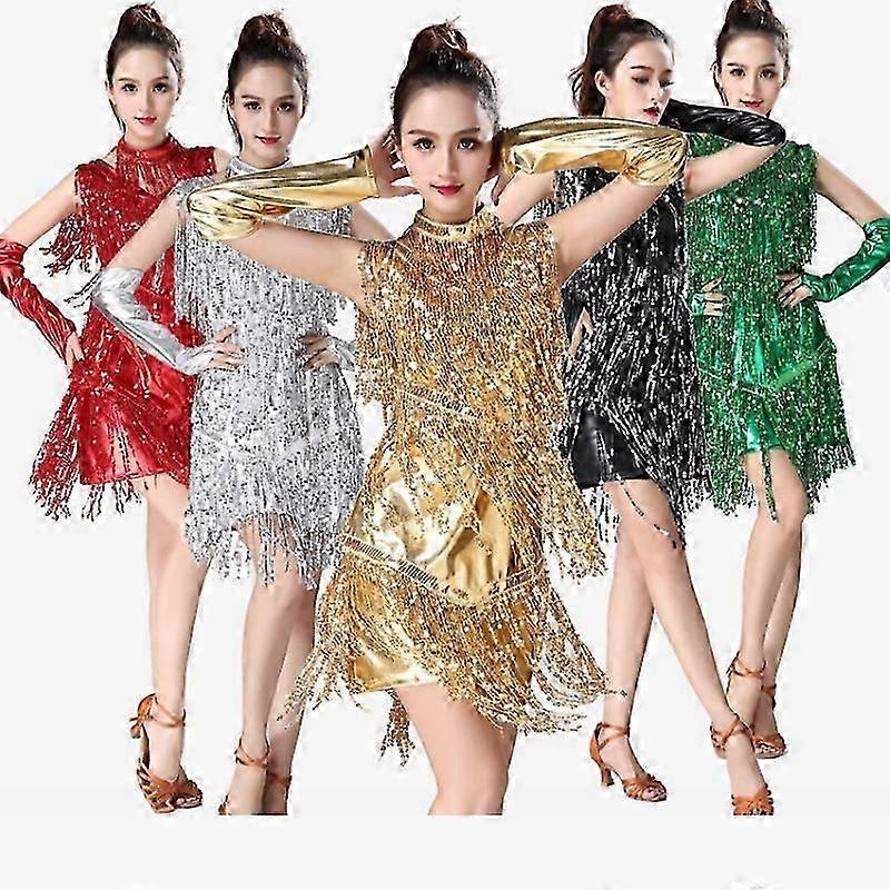 Women's Dance Outfits Classy Short Sleeve Latin Sequinned Fringe American Dancing Dress Girls Practice Dancewear Stage Costume