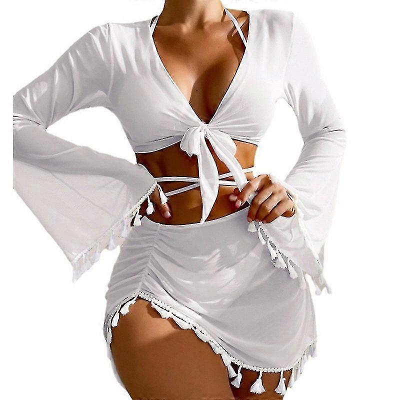 Women's 4pack Halter Triangle Bikini Swimsuit With Tassel Cover Up Set
