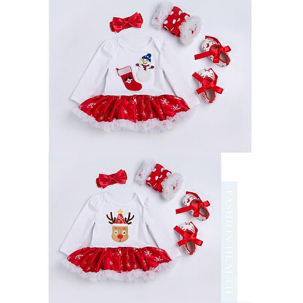 Baby Bodysuit Christmas Deer Patterned Dress Toddler Newborn Assorted Color Suitable for Photograph 1Set