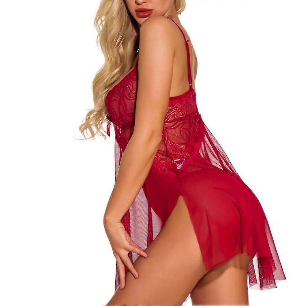 Bodysuit Underwear Underskirt Gauze See-Through Underwear Braces Dress Underpants for Women Lady XL Wine Red 1Set