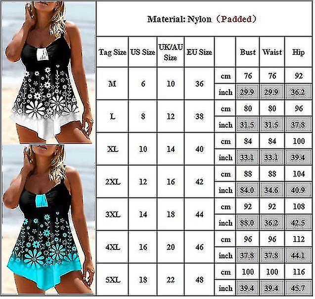 Plus Size Women Floral Swimsuit Tankini Bikini Set Swimwear Bathing Suit Beachwear