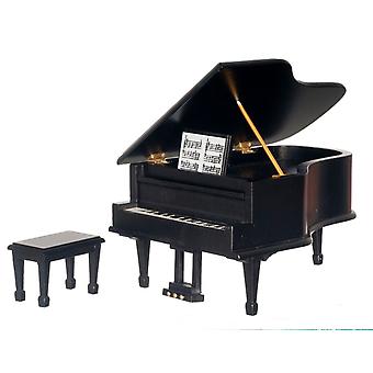 בובות בית פסנתר כנף שחור & ספסל מיניאטורי 1:12 סולם ריהוט חדר מוסיקה