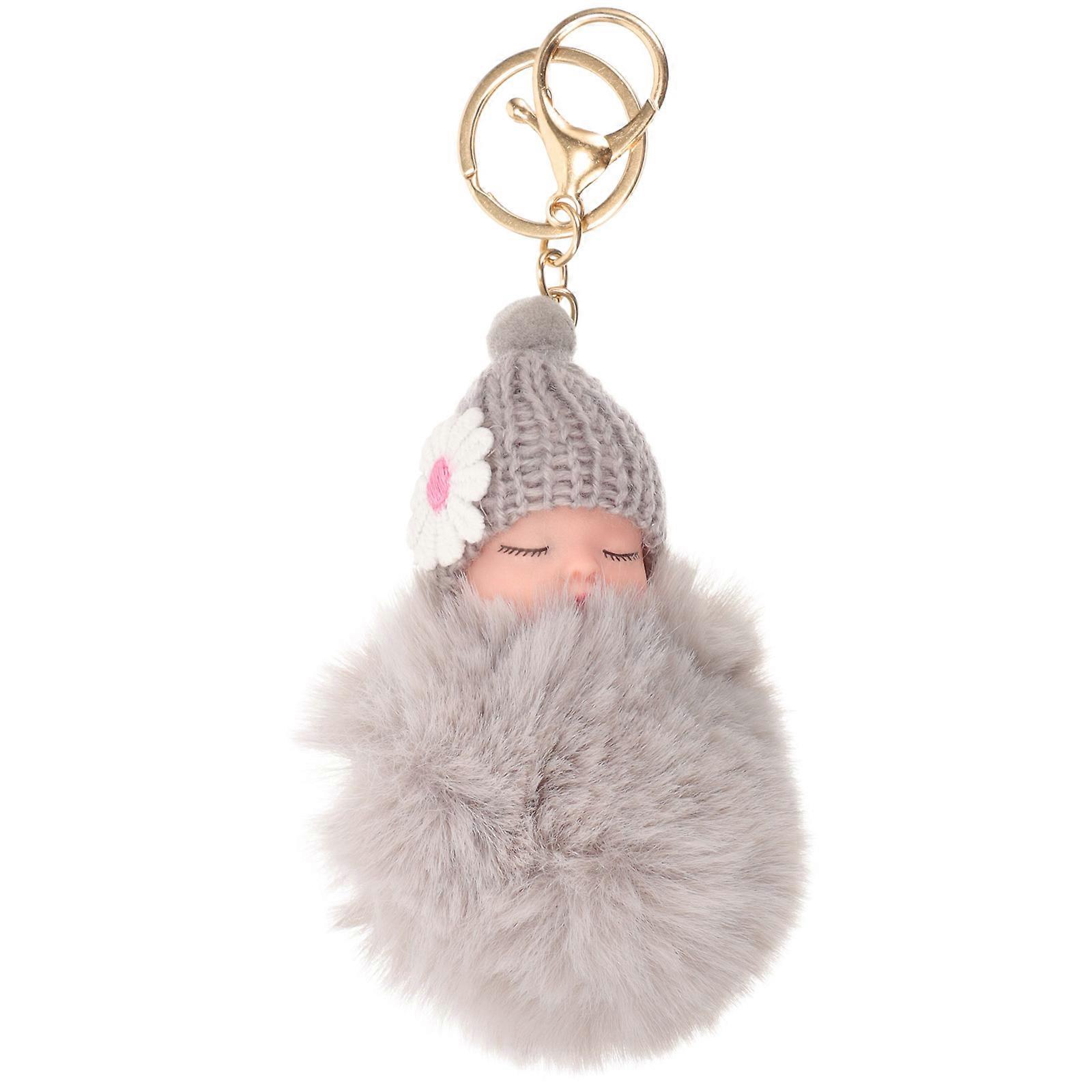 Furry Dolls Keyring Light Pink Pompom Bag Accessory Portable Lightweight Round Style Women Gift Giving 1Pcs