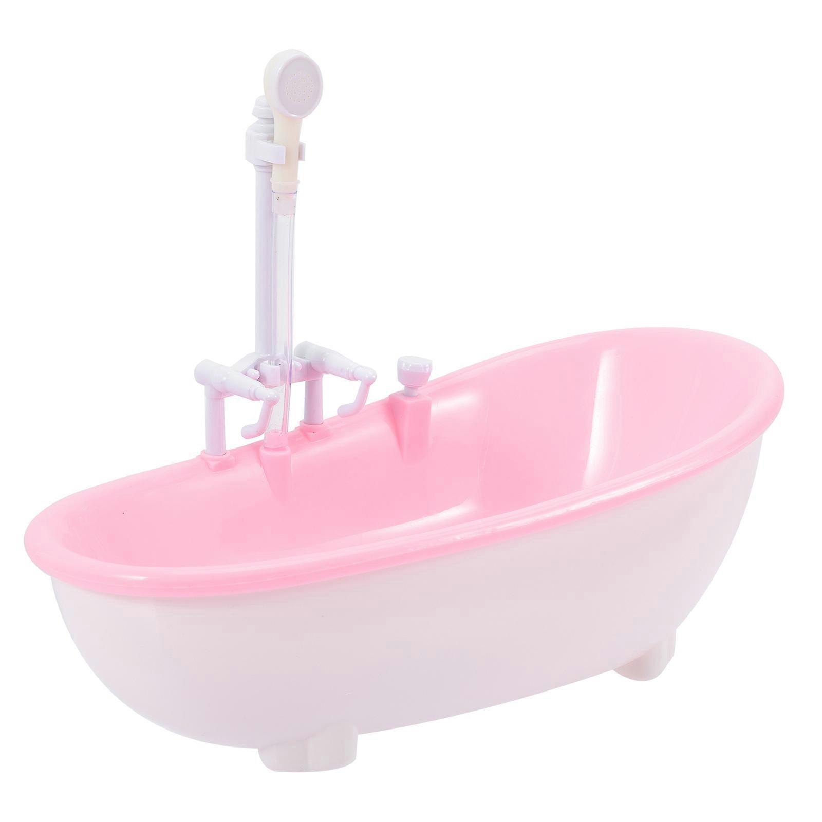 Electric Doll Bathtub Toy with Water Spray for Kids Playing 2Pcs Pink Mini Bath