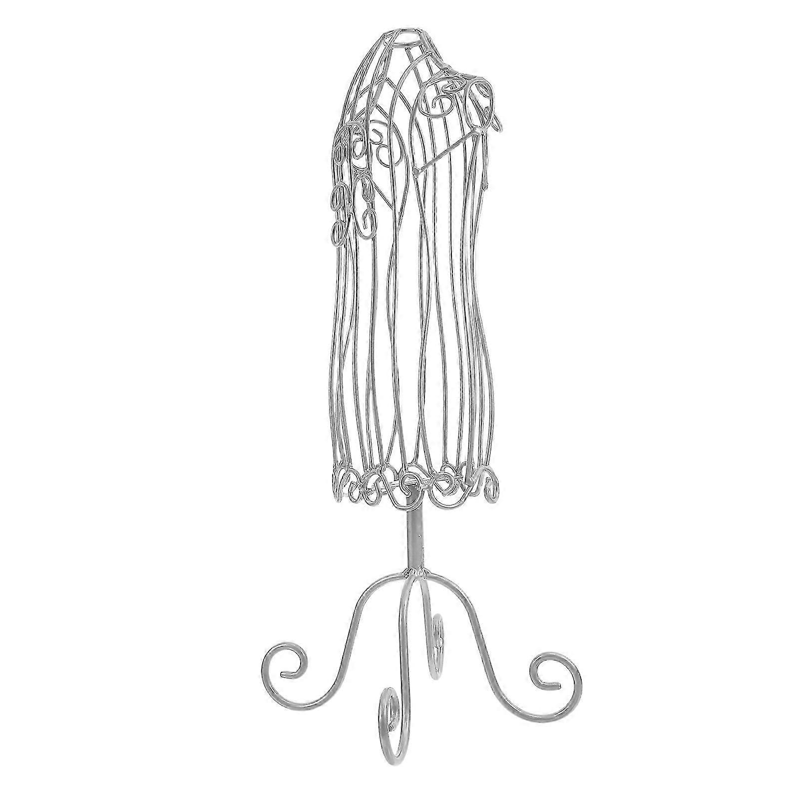 Miniature doll mannequin, silver metal shelf for displaying 2 pet clothing items