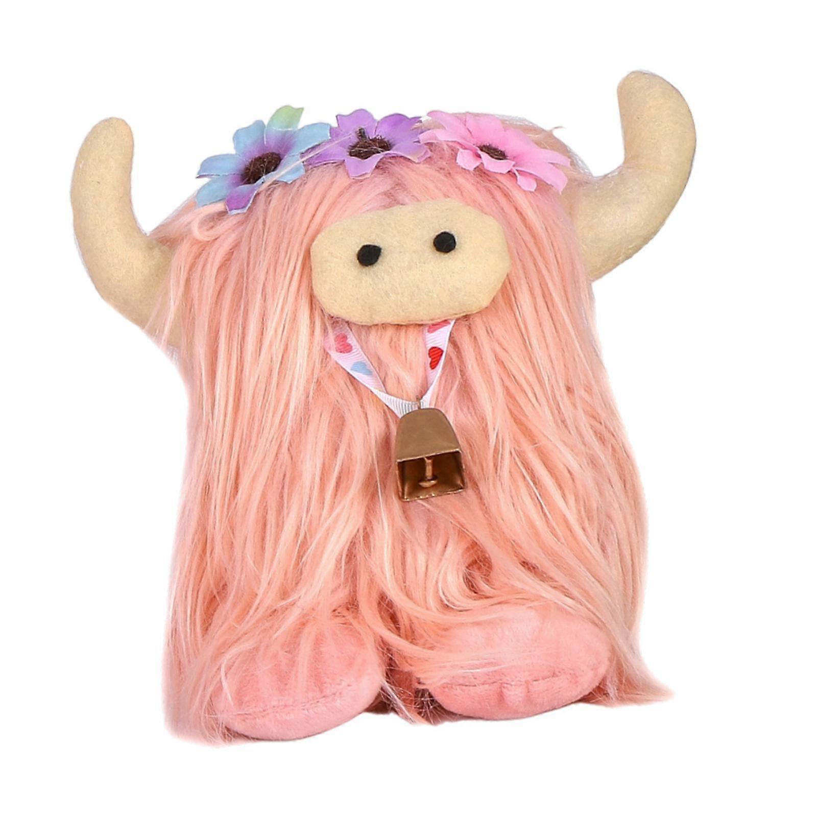 Long Haired Cattle Doll Highland Cattle Stuffed Decor for Wedding Desktop Kids Pink