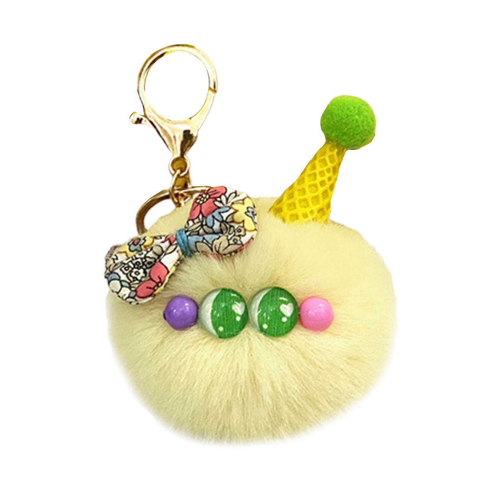Pompom Ice-cream Doll Pendant Cute Ice-cream Cartoon Stuffed Toy Car Keychain Bag Decoration Birthday Gift for Boy Girl Yellow