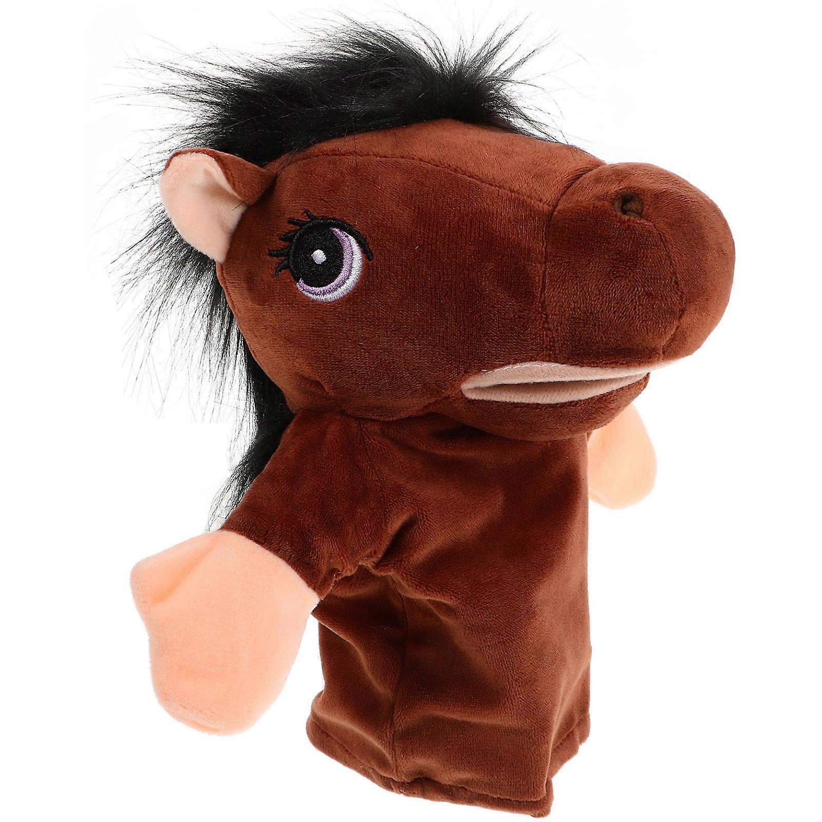 Animal Hand Puppet Horse Shape for Christmas Party Plush Light Brown Storytelling Prop 1Pcs