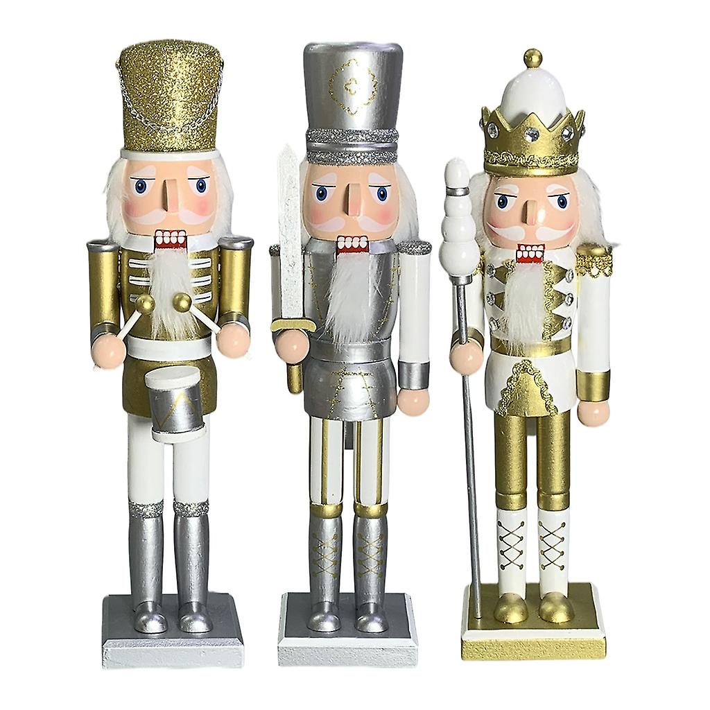 Nutcracker Puppet 38cm Nutcracker Handcraft Traditional for Xmas Party Kids 3pcs Set