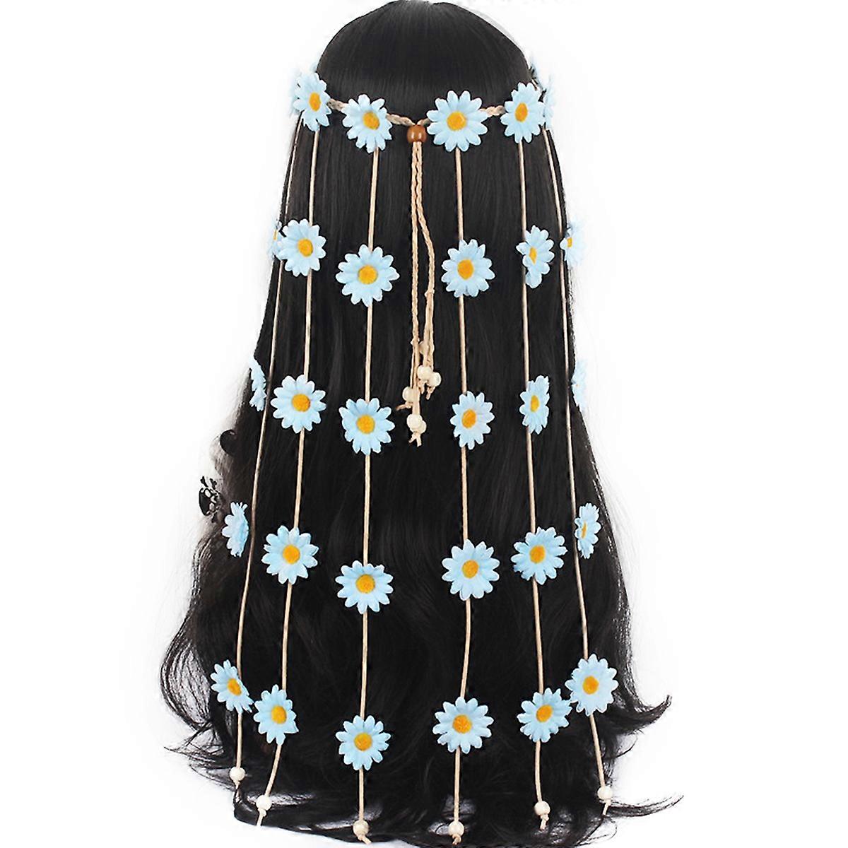 Boho Headpiece Fashion Flower Headband Adjustable Long Headwear for Women Girls Sky-Blue 1Pcs
