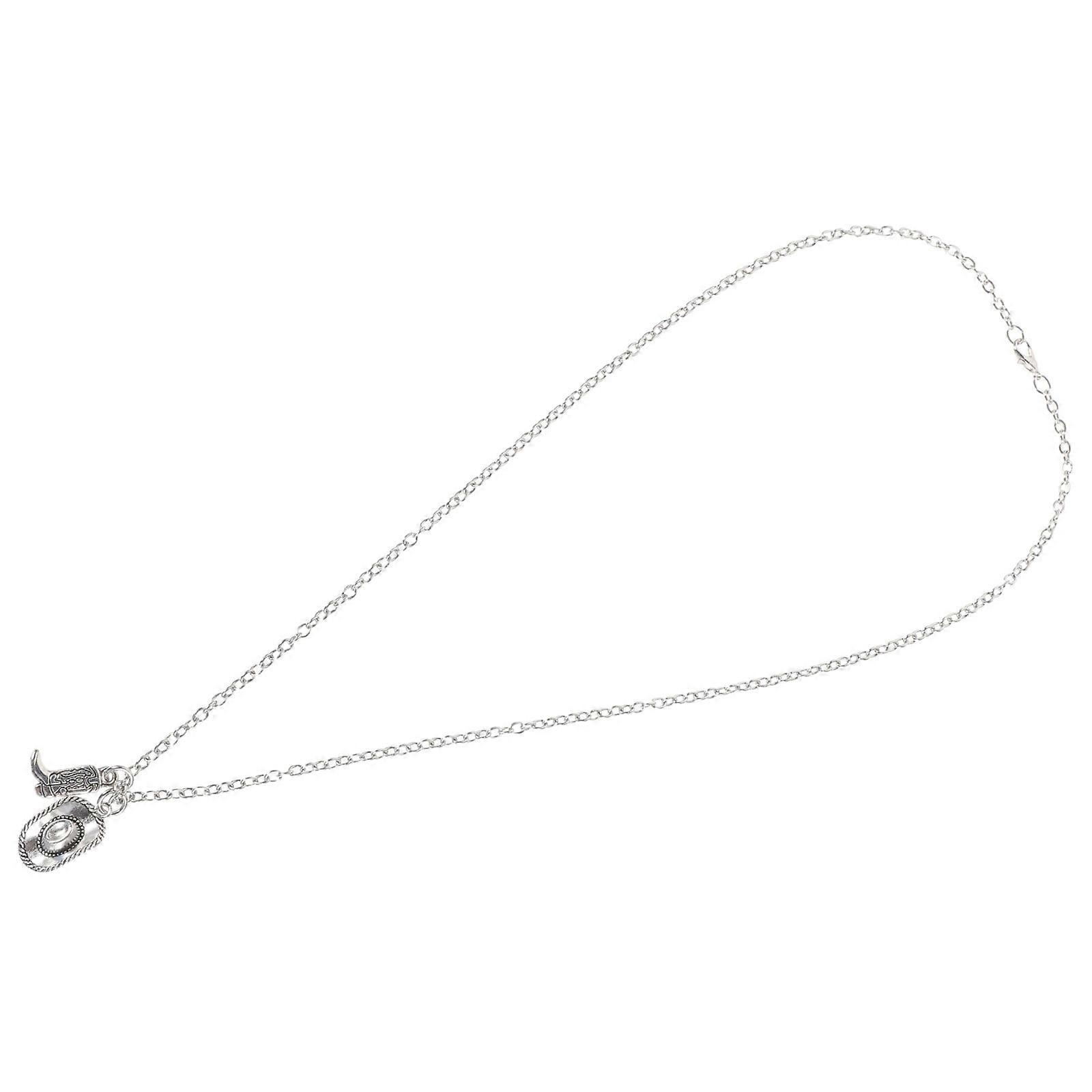 Cowgirl Chain Necklace Cowboy Hat and Boot Metal Pendant Western Style Party Accessory 32.5x1.5cm Hanging Ornament 1Set