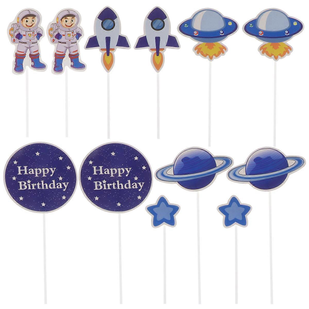 Birthday Cake Picks Astronaut Theme Spacecraft Cake Toppers Paper Cupcake Decorations for Kids Party 17 x 9 x 0.1 Cm 12Pcs
