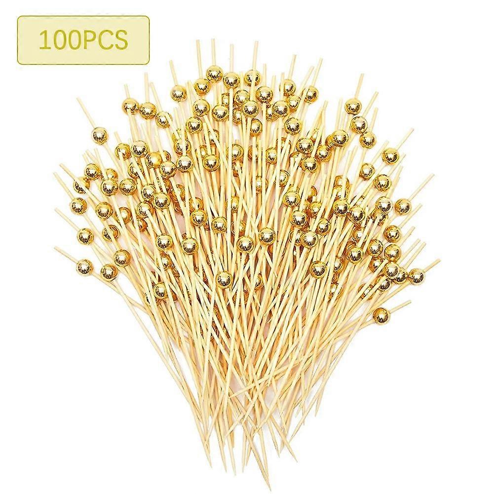 Gold Pearl Cocktail Picks, Bamboo Appetizer Toothpicks