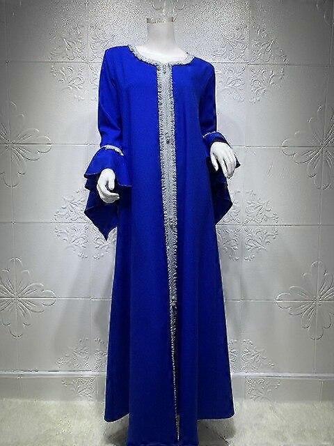 Muslim Clothing Middle East Malay Lotus Leaf Sleeve Embroidered Gold Lace Dress Jalabiya Muslim Women