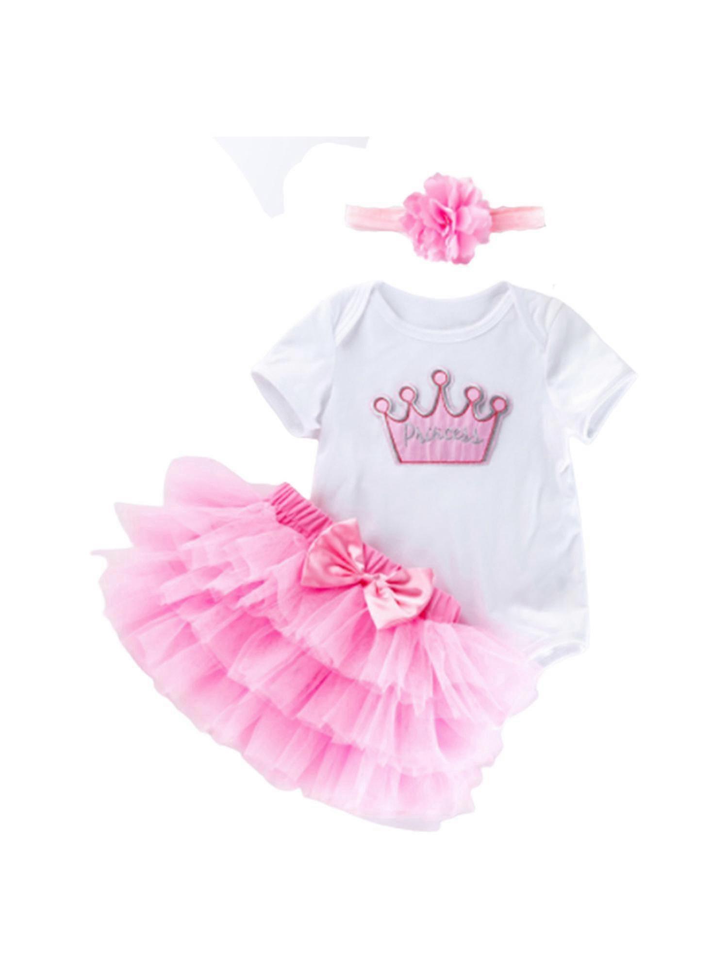 Baby Girls First Birthday Clothes Set Short Sleeve Romper Layered Party Tulle Tutu Skirt Headband Outfit