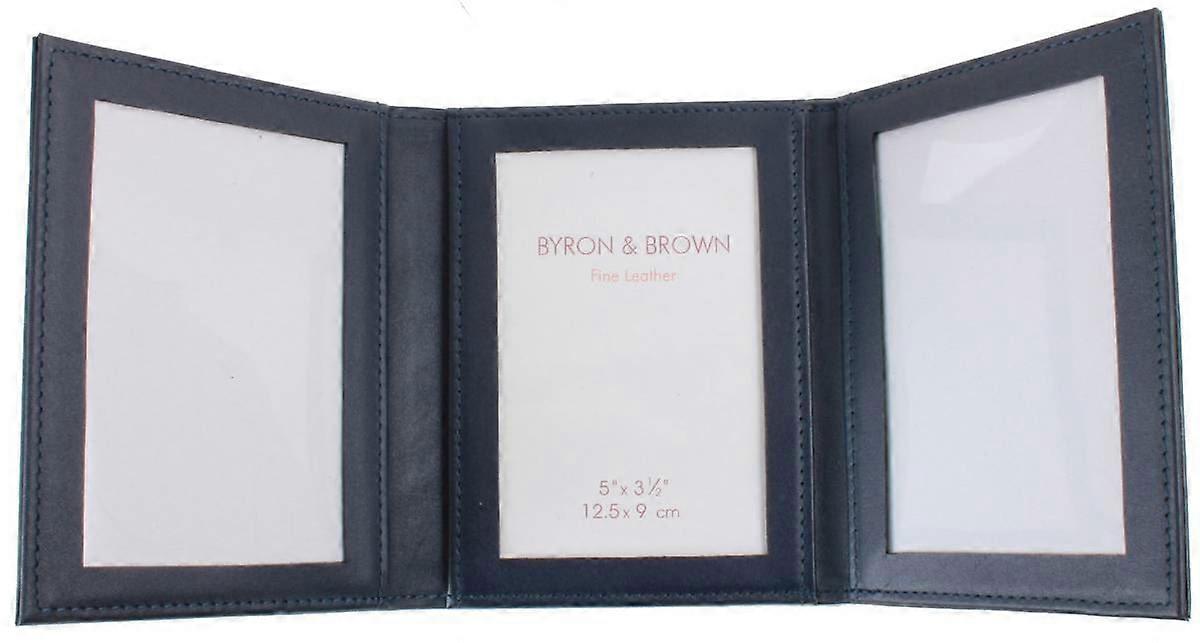 Byron and Brown Folding Nappa Leather 3 Fold 5 x 3.5 Travel Frame - Navy