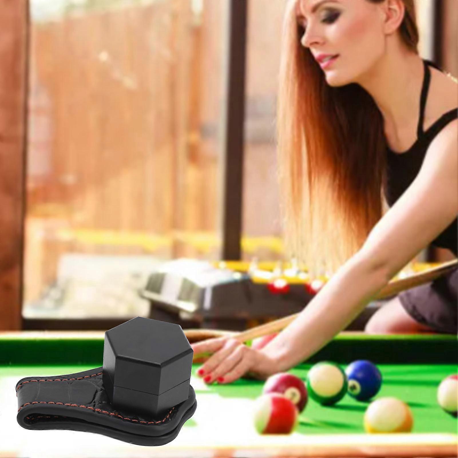 Billiard Chalk Holder Aluminum Alloy Magnetic Hexagonal Portable Pool Cue Chalk Box with Leather Clip for Snooker Tool Billiard Accessories