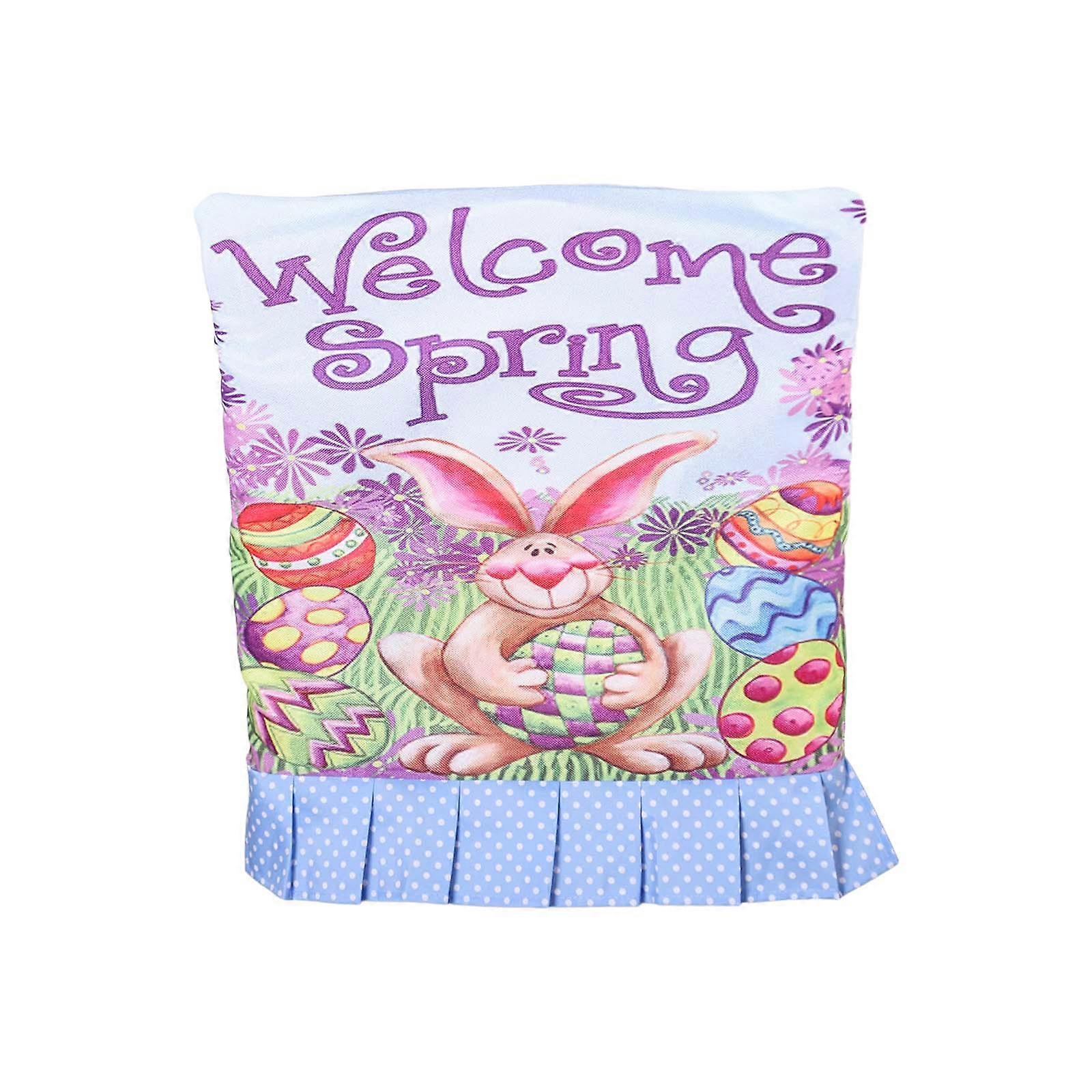 Rabbit Eggs Printed Chair Back Cover Easter Holiday Party Ruffle Hem Chair Slipcover Washable Furniture Protective Cover