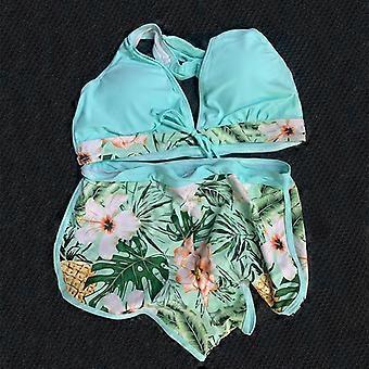 Sexy Bikinis Women Summer Two Piece Print Swimsuit Female Push Up Halter Ruched Wrap Front High Waist Bathing Suit