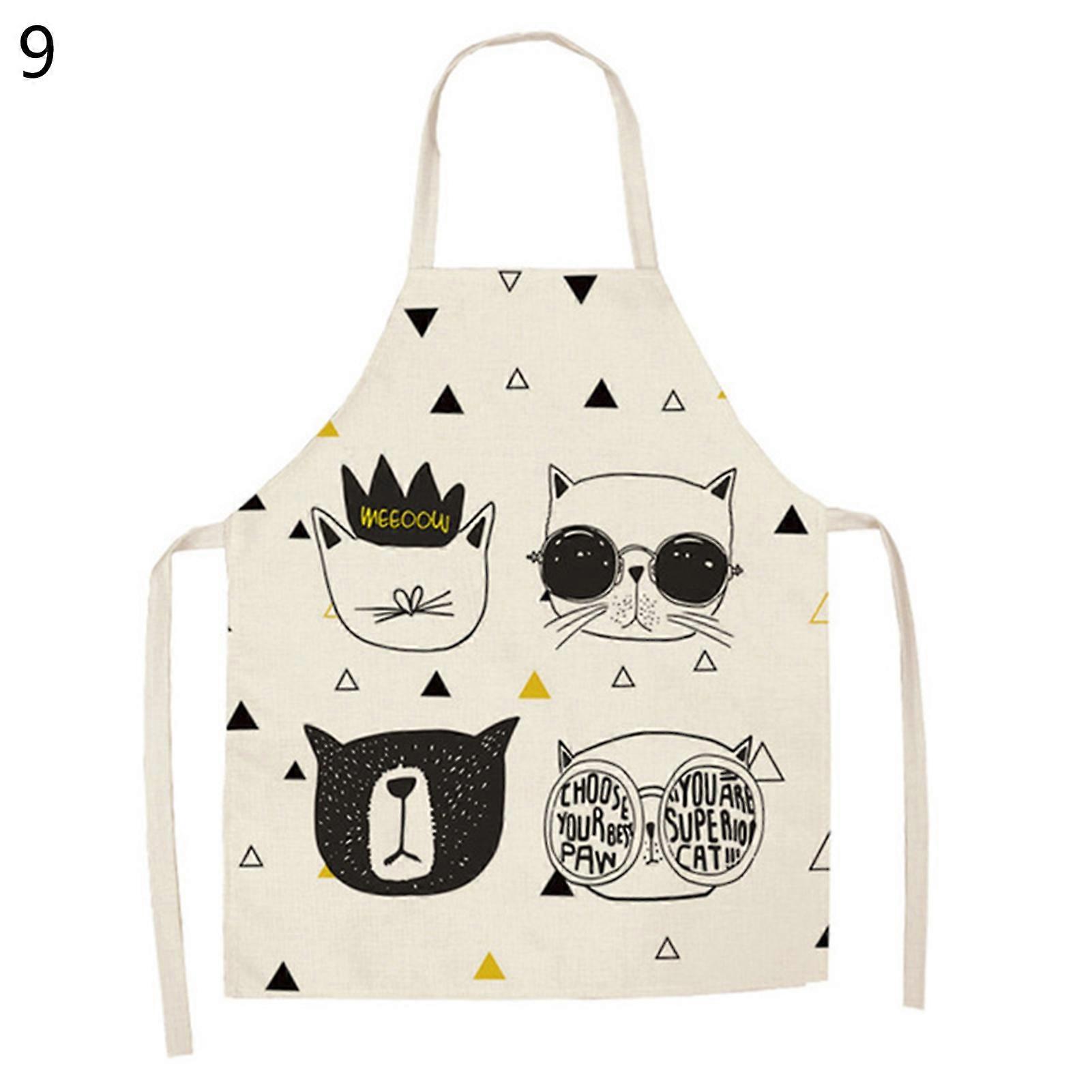 Cooking Apron Sleeveless Waterproof Flax Unisex Cartoon Cat Printed Chef Long Kitchen Bib Home Supplies