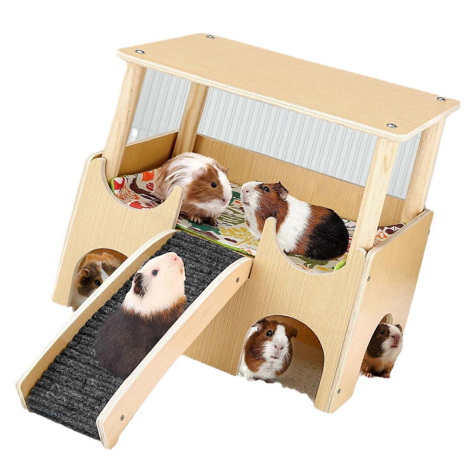 Double Layer Hamster House With Slip Resistant Slide Hideouts For Small Pet Guinea Pigs House Wood Cage Accessories Multicolor