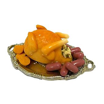 בית בובות גדול צלוי טורקיה על מגש כסף מיניאטורי חדר אוכל
