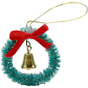 בית הבובות זר חג המולד הירוק עם סרט & אביזר דלת מיניאטורי בל