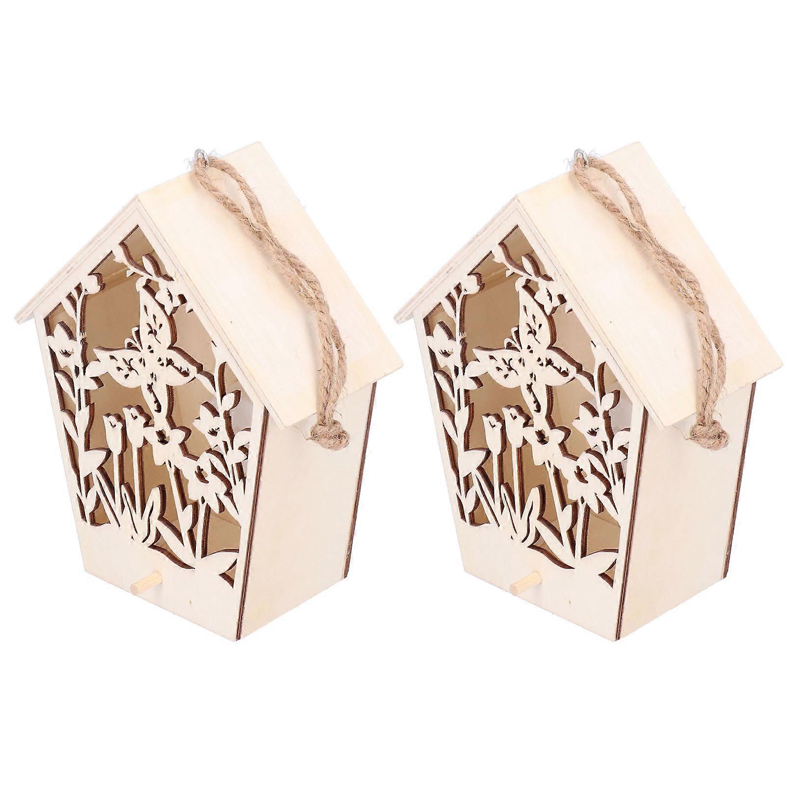 Wood Bird House 2PCS Wooden Bird House Indoor Outdoor Decor Garden Birdhouse with Warm Light Wooden Ornaments