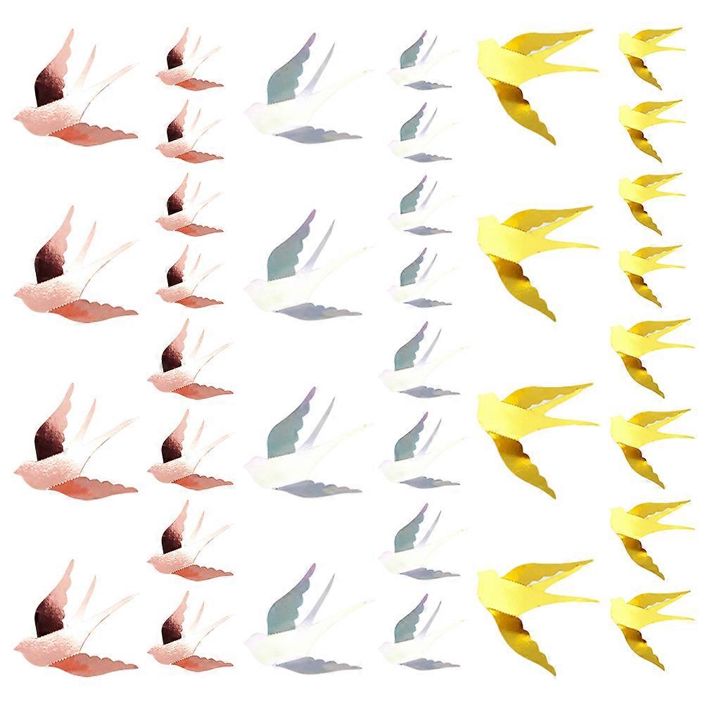 Home Decor Wall Swallow Art Ornaments 3D Swallow Shape Silver 12x10cm 36Pcs