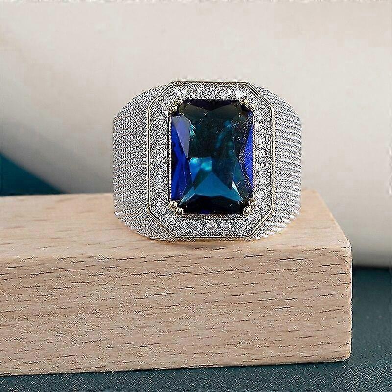 Bella Box Luxury Silver Color Men Ring With Genuine Black Blue Big Stone Engagement Wedding Party Ring 25-26