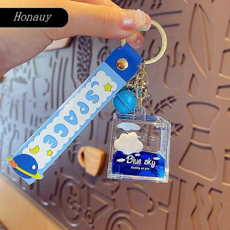 Blue Sky Cruise Fluid Keychain Liquid Home Living Room Sunny Cloud Clear Hourglass Ornaments Creative Key Chain Bag Pendant