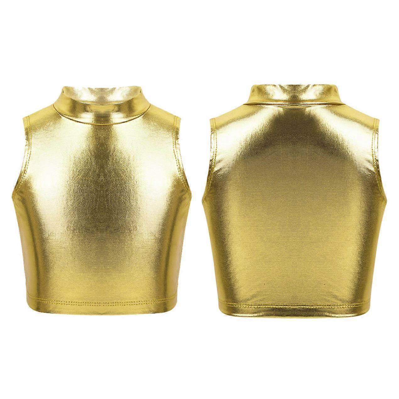 Fashion Girls Shiny Metallic Sleeveless Turtleneck Crop Tank Tops Gymnastics Cami Tank Top Dancewear