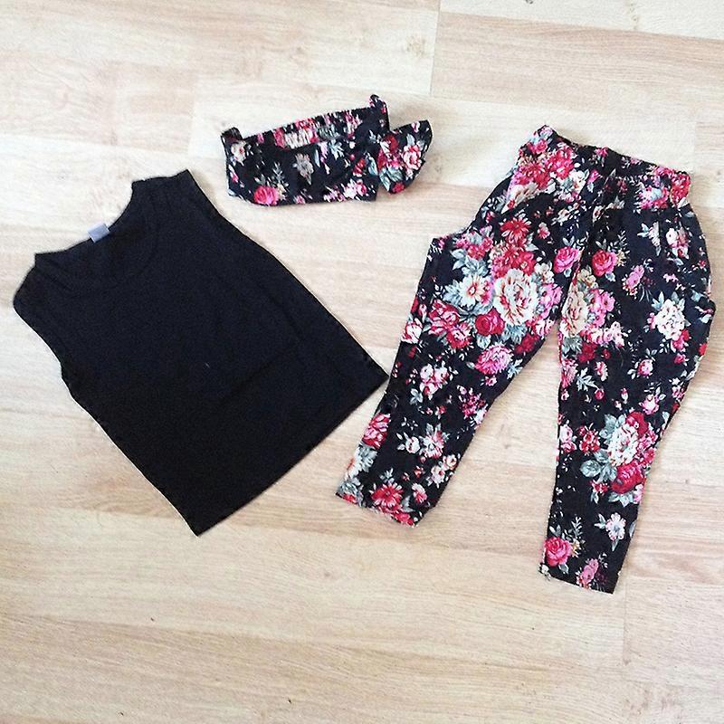 Girls Tank Top Floral Pants Headband Set Kids Summer Casual Outfit