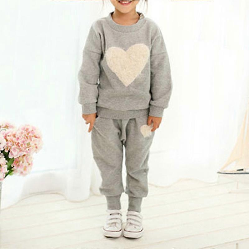 Girls Heart Print Sweatshirt Top Sweatpants Set Kids Casual Sports Outfit