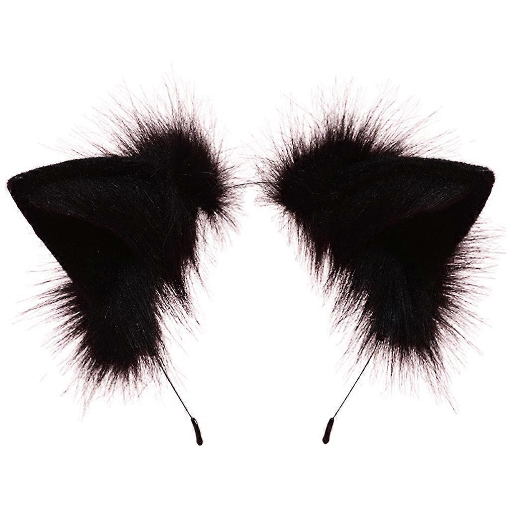 Cosplay Furry Animal for Cat Ears Hair Hoop Lolita Costume Cosplay Long Fur Headpiece for Halloween Party Decoration black