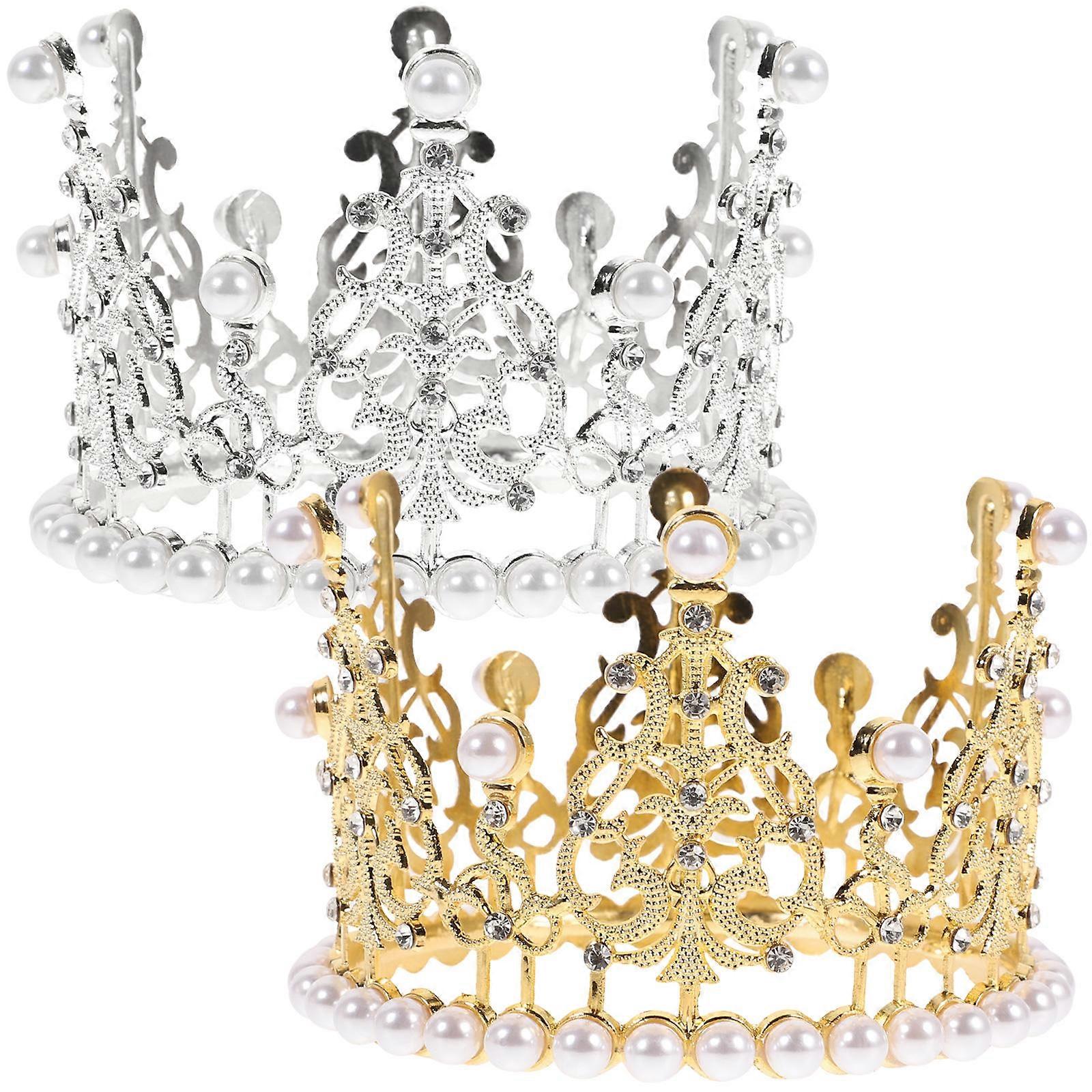 Girls Crown Rhinestone Tiara Decorative Headwear Children Wedding Favors Hair Accessory 12x7.5cm 2Pcs