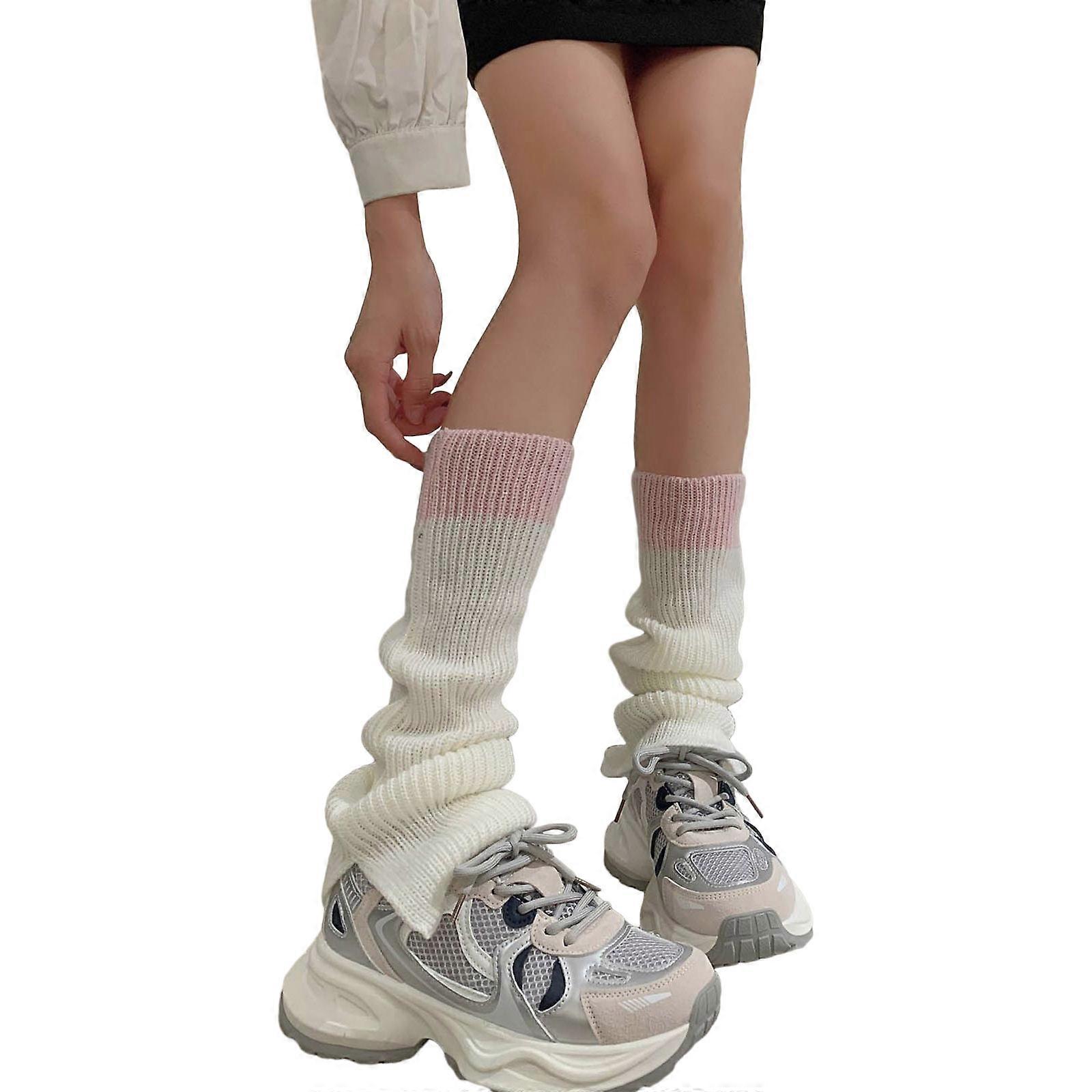 Girls Lolitas Leg Warmers Y2K Knitted Flared Leg Sleeves Goth Crochet Baggy Cuffs Ankle Heap Socks JK Uniform Foot Cover White One Size