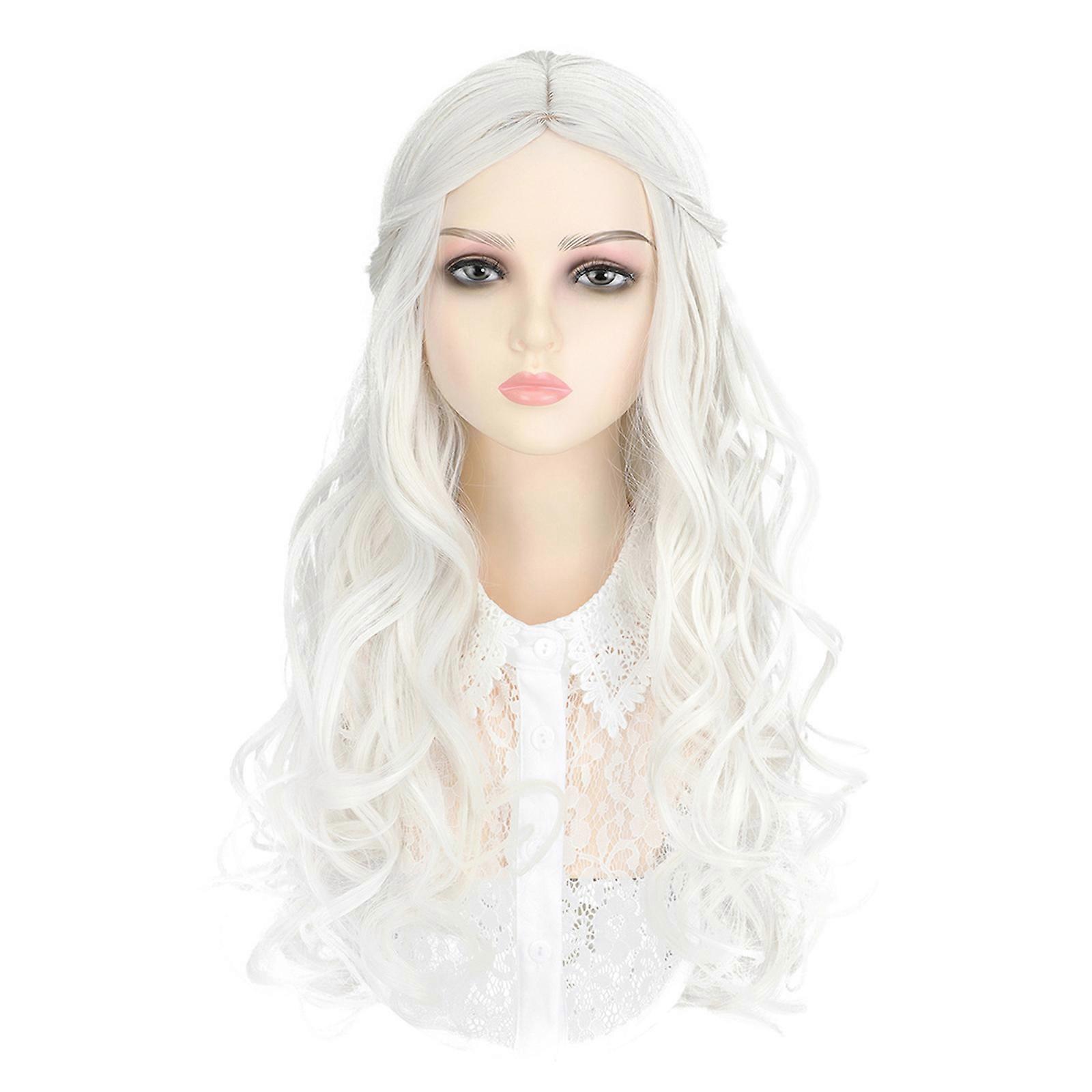 Girls Curly Hairpiece Long Hair Wigs Full Head Toupee for Halloween Holiday Cool Hair Color for Cosplay Coser White