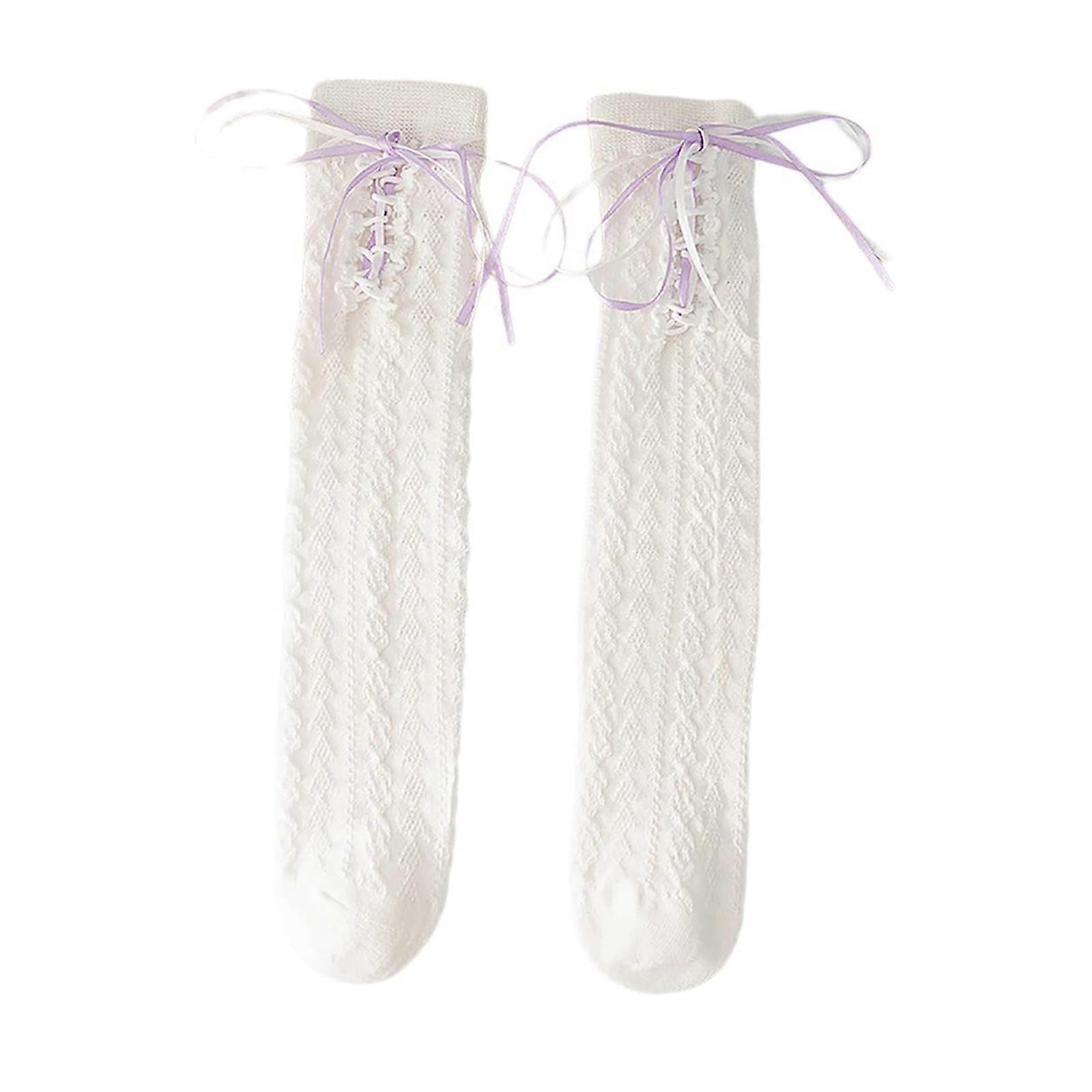 Girls Princesses Dress Socks Bows Tie On Knee High Socks Cotton Calf Socks School Uniform Middle Tube Socks Stockings Purple