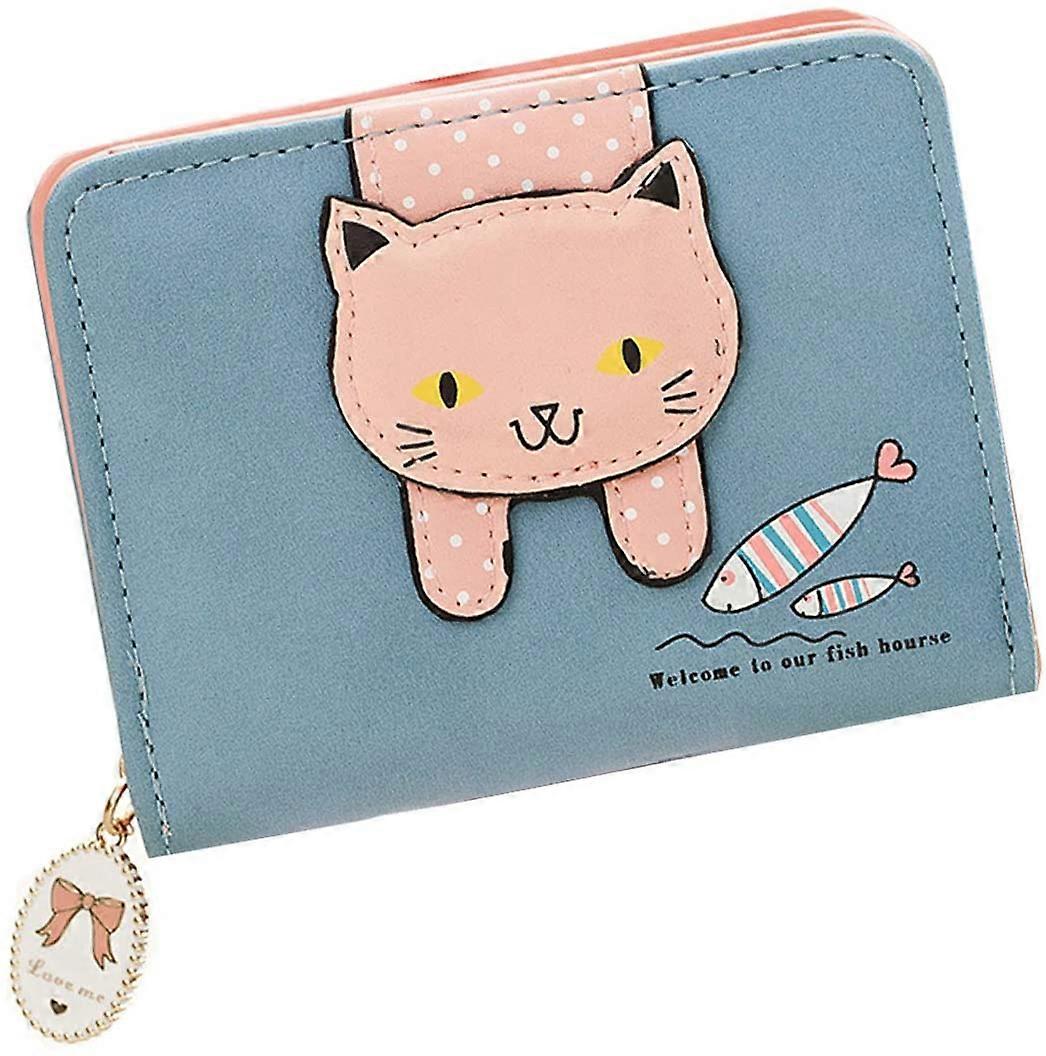 Girls Women Small Wallet Cute Cat Pattern Clutch Purse Coin Holder Card Organizer (Blue)