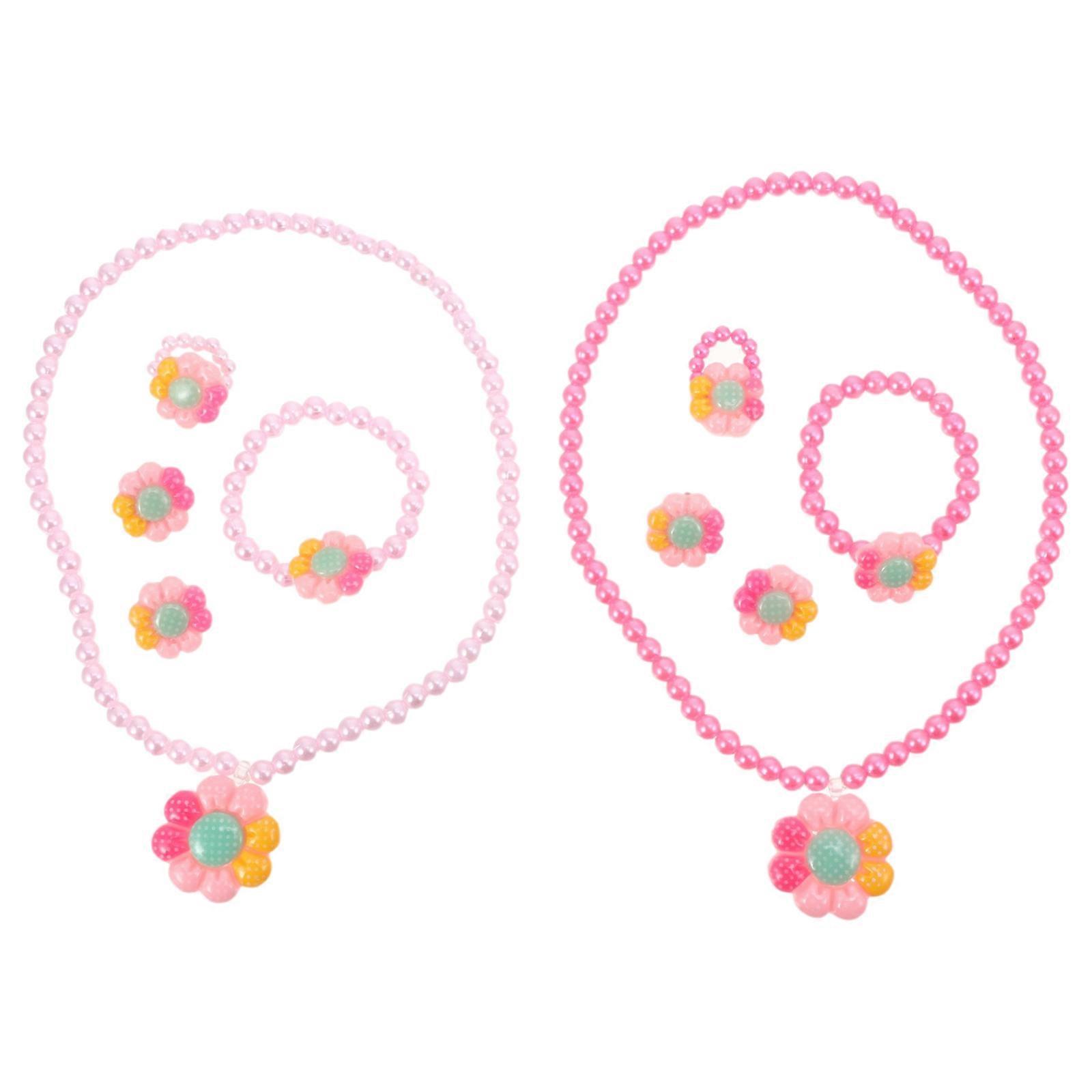 Girls' Cartoon Jewelry Set Ideal For Recreational Activities Featuring Flower Necklace And Bracelet 2 Sets