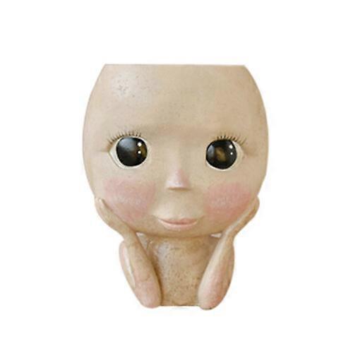 Girls Face Head Figurine Flower Pot Succulent Plant Resin Pots Garden Planter
