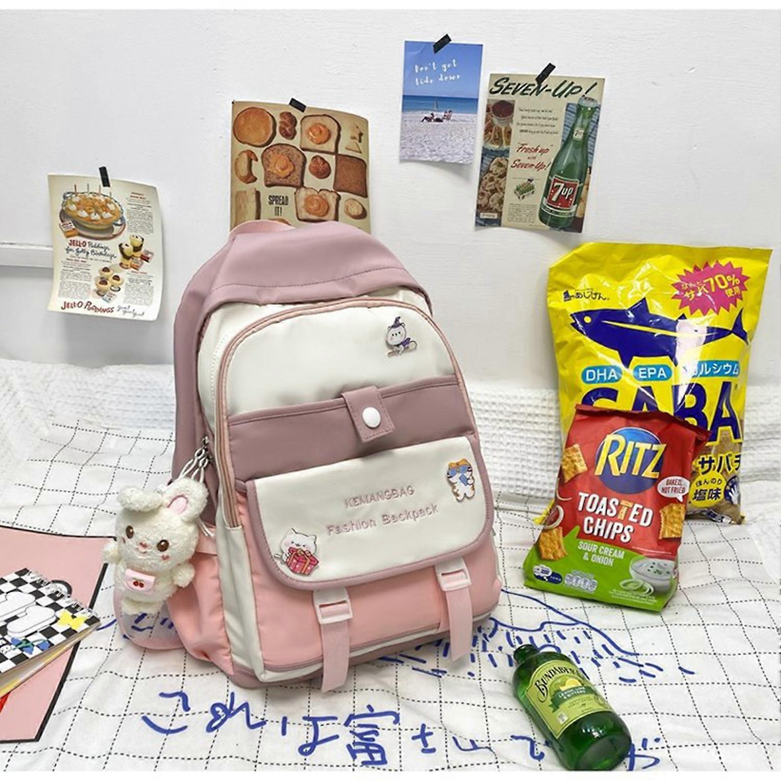 Girls Campus Backpack for Everyday Reduced Burden Cute Schoolbag with Badges for Books Laptop Magazines