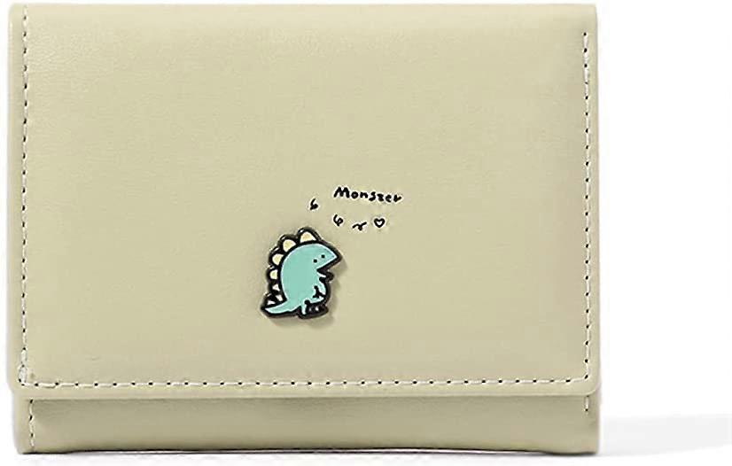 Girls Cute Dinosaur Badge Tri-folded Wallet Small Wallet Cash Pocket Card Holder ID Window Purse for Women (GREEN, DINOSAUR BADGE)