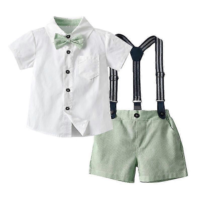 "Boys Suit Children's Short-sleeved Shirt with Bowtie + Suspender Shorts Two-piece Set"