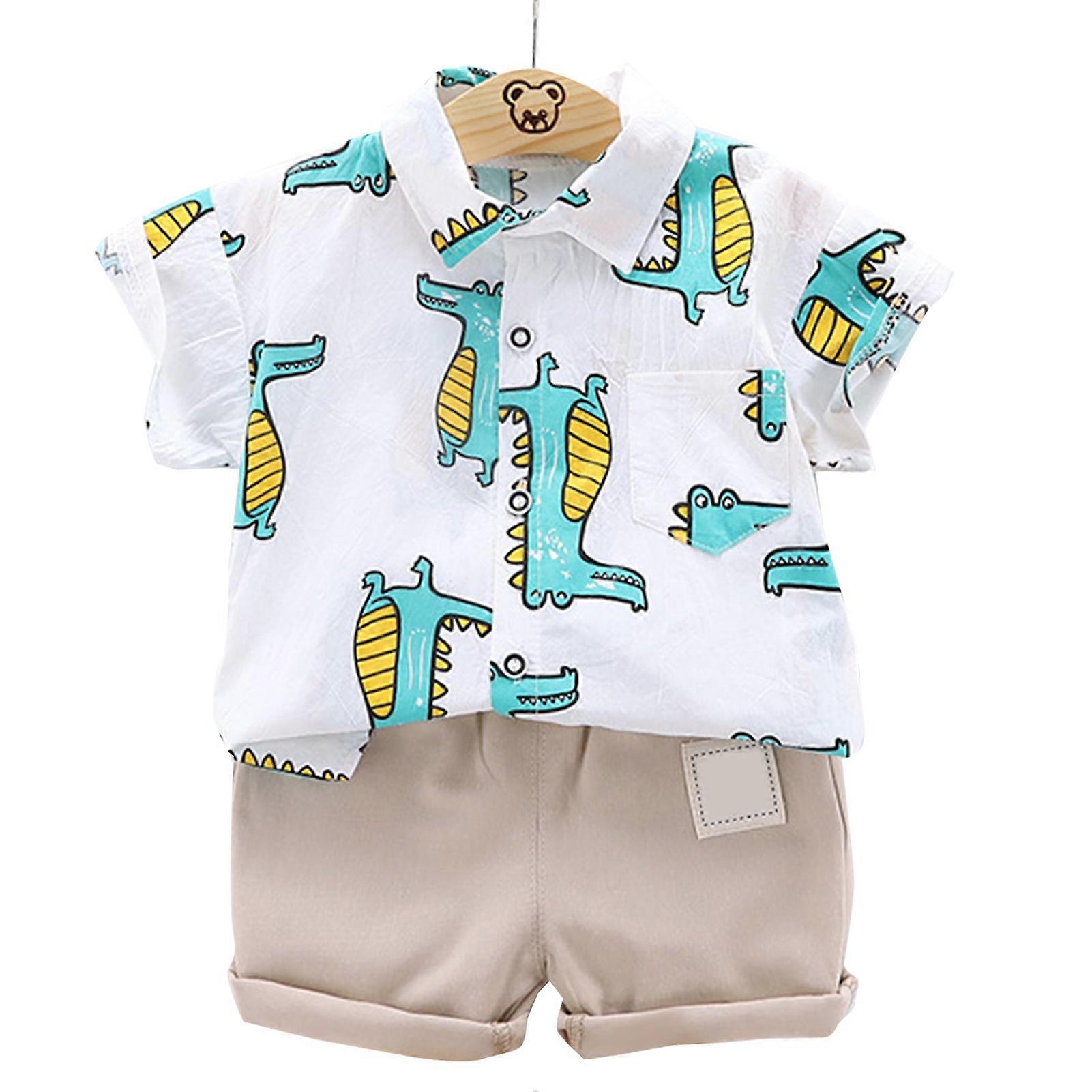 Boys Suit Set Short Sleeves Shirt Shorts Cartoon Animal Pattern Children Outfits Sets Light Green
