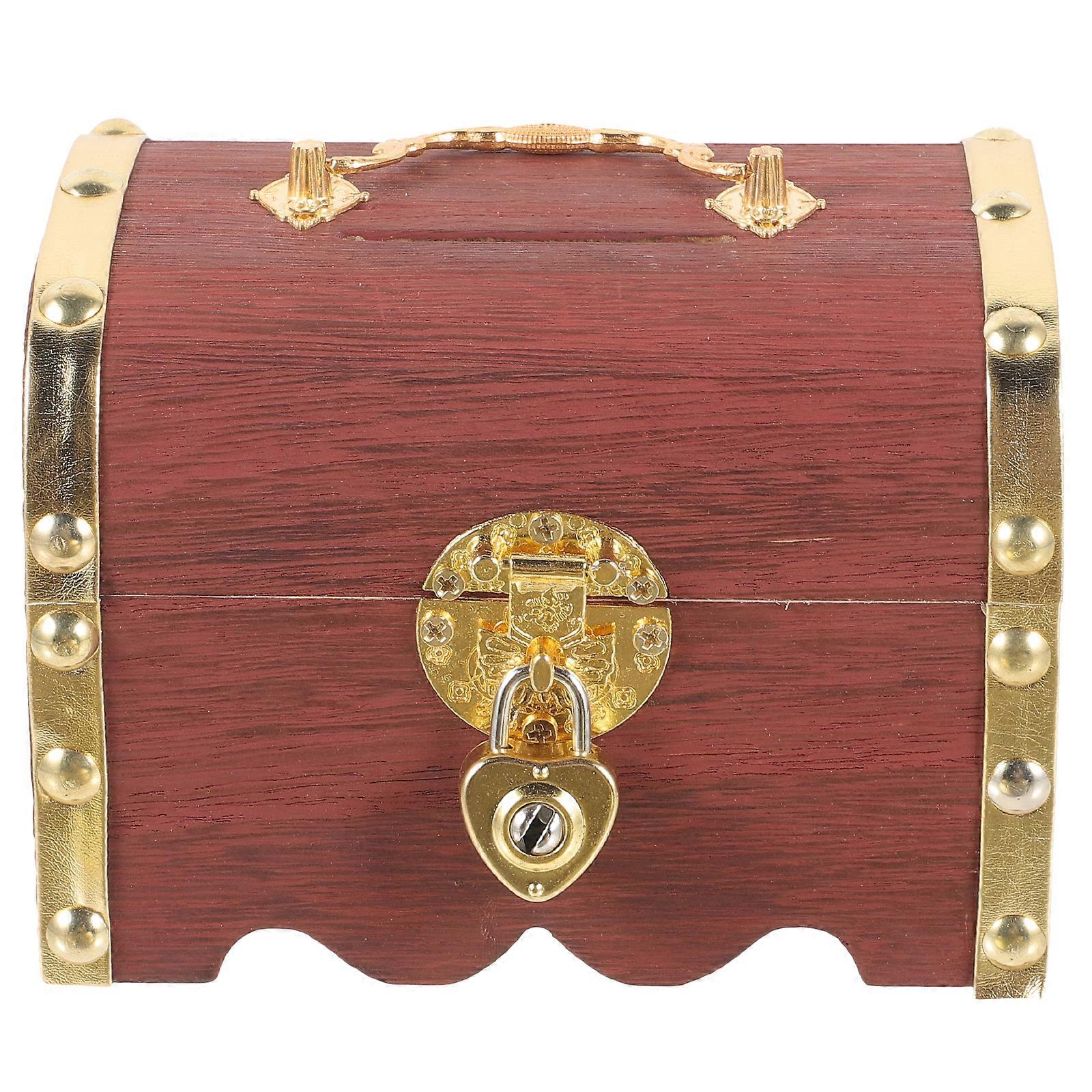 Wooden Piggy Bank Lockable Money Box Wood Treasure Bank Treasure Jar Jewelry Storage Box
