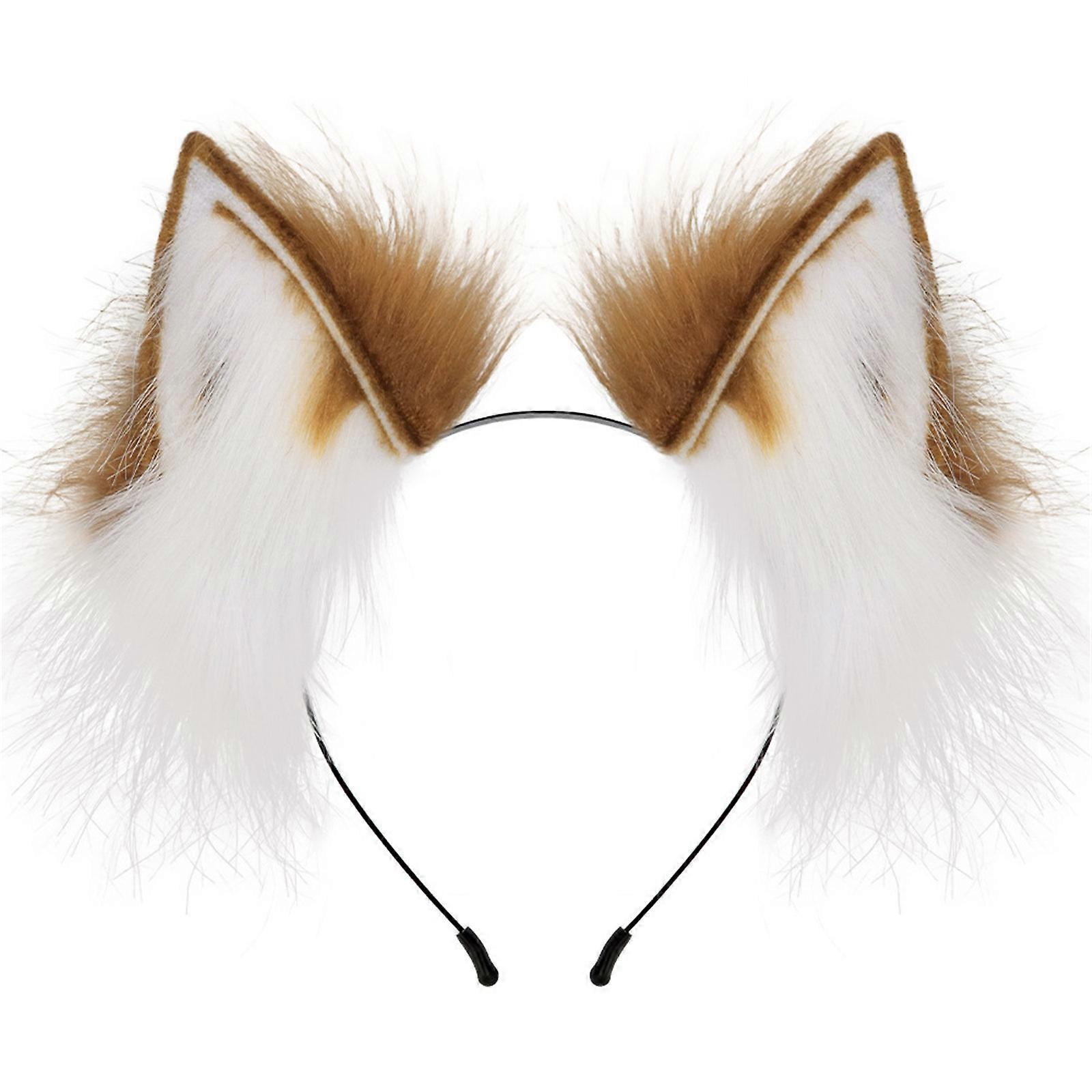 Handmade Animal Ear Headbands Animes Hairband Masquerades Costume Headpiece Teens Girl Cosplay Dress Up Hairhoop Brown and white
