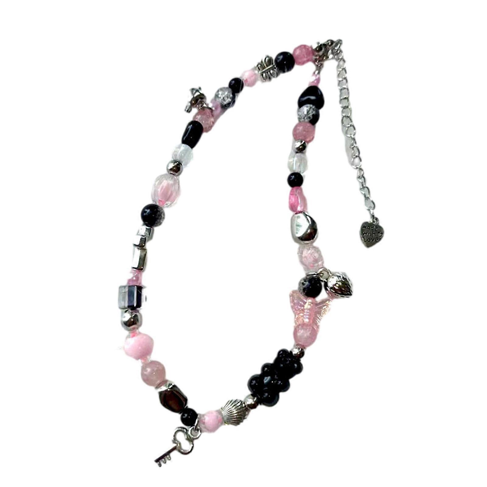 Handmade Heart Choker Delicate Beads Necklace Acrylic Alloy Material Bead Choker Necklace Perfect Gift for Trendy Girls Pink